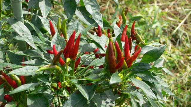 蜂がいなそうな唐辛子畑でも・・・