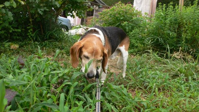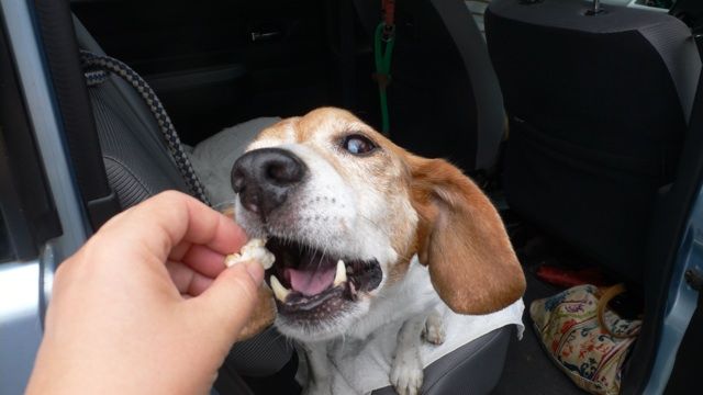 ポチ子さんたらこのビーグルズアタックに耐えて