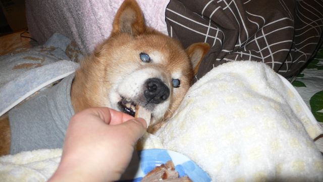 さくらは僕が食後のお散歩から戻ってもまだ食べ終わってなかった。